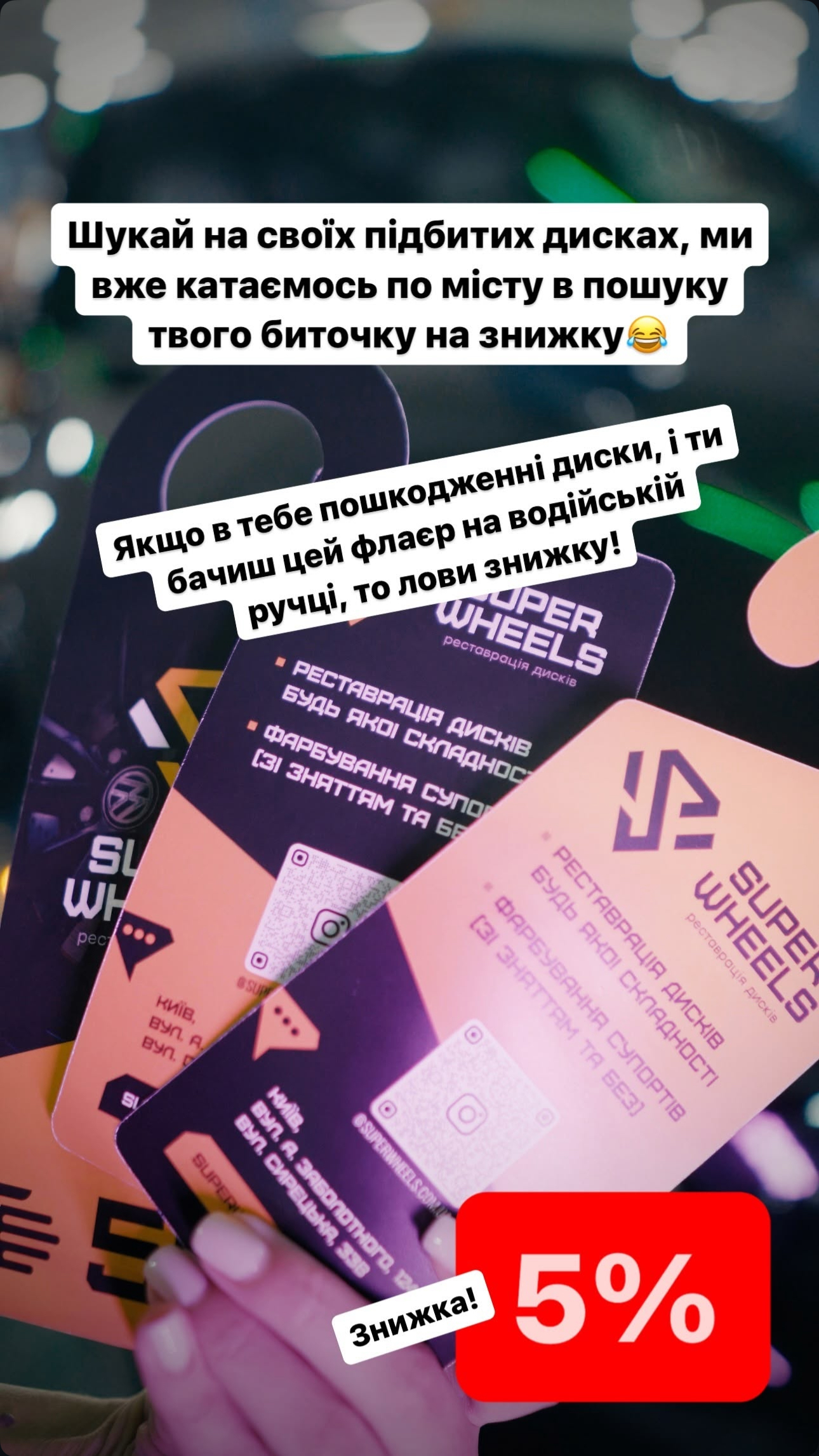 Якщо в тебе пошкодженні диски, і ти бачиш цей флаєр на водійській ручці, то лови знижку!